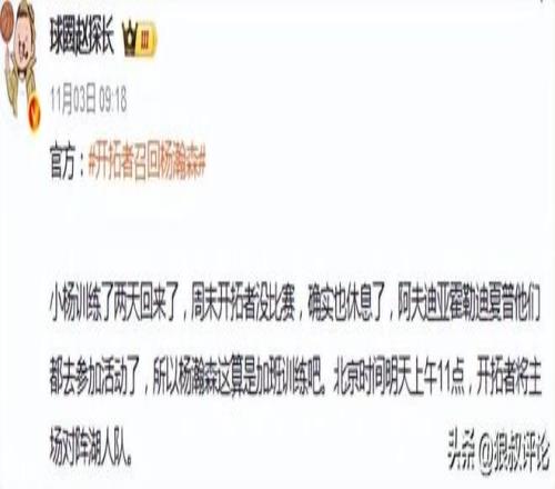 北京时间11月4日,根据开拓者中文记者“yovic”的报道,我被告知杨瀚森短期内不会去发展联盟联赛打比赛。过去以及以后的下放动作,都是为了参加训练。