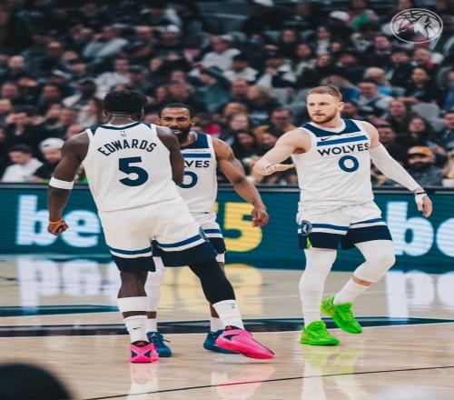 森林狼队首发阵容:迪文琴佐、爱德华兹、麦克丹尼尔斯、兰德尔、里德