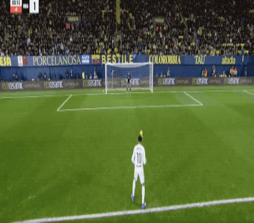 第62分钟,比利亚雷亚尔的任意球设计巧妙,莫雷诺身边无人,居然将球打高,黄潜自家球迷都摊手表达不满。