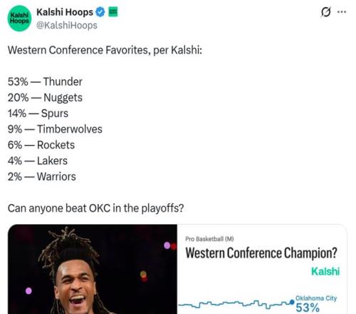 西部冠军概率出炉!湖人4%勇士2%火箭6%仅第五一队超5成断档第一