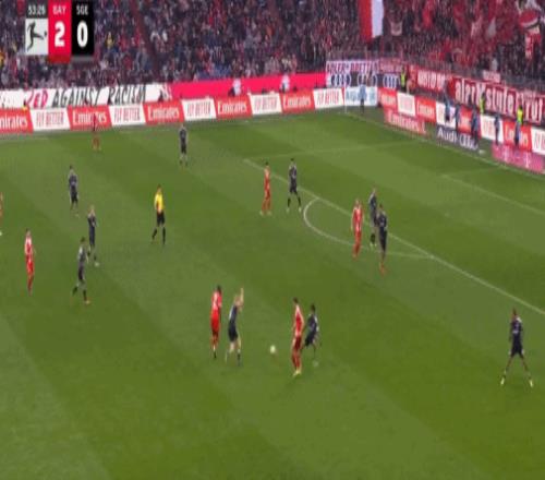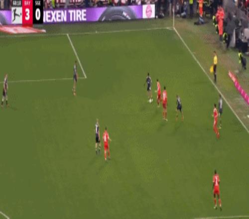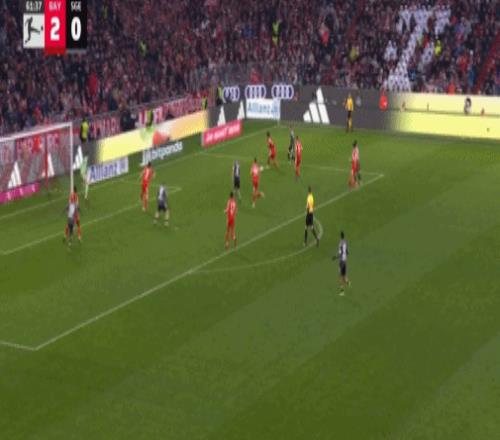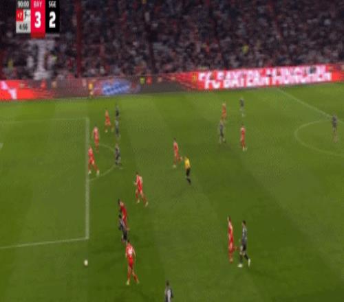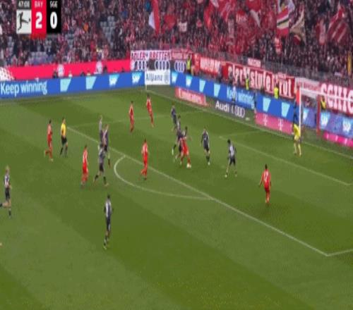 第16分钟,帕夫洛维奇抽射,桑托斯扑救失误,拜仁1-0法兰克福