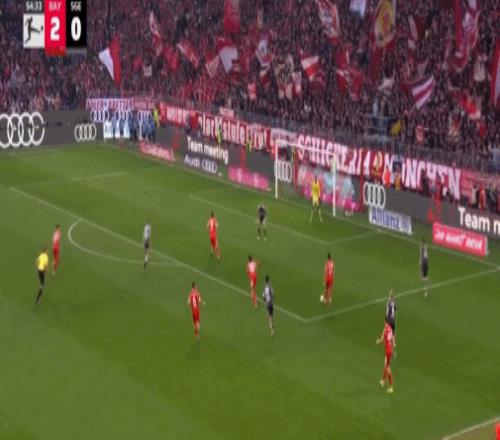 第86分钟,基米希传出刀山球,金玟哉将球踢到卡利穆恩多身上弹进球门,拜仁3-2