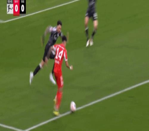 第41分钟,斯塔尼希奇传中,穆西亚拉铲射没有碰到球